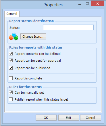4. In the Status box, enter a name for the report status.