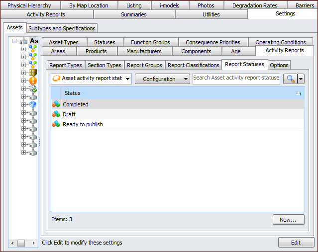 Setting up Statuses for Asset Activity Reports