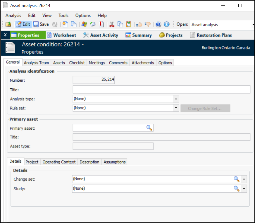 9. On the Operating Context tab, you can record the circumstances in which the asset operates.