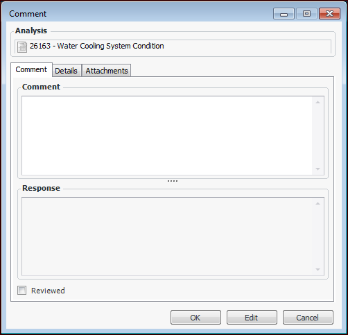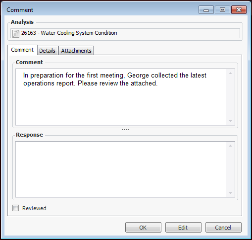 2. Click Edit to modify the comment, add a response, or mark the comment as reviewed. You can also add attachments and view details about the comment’s history.