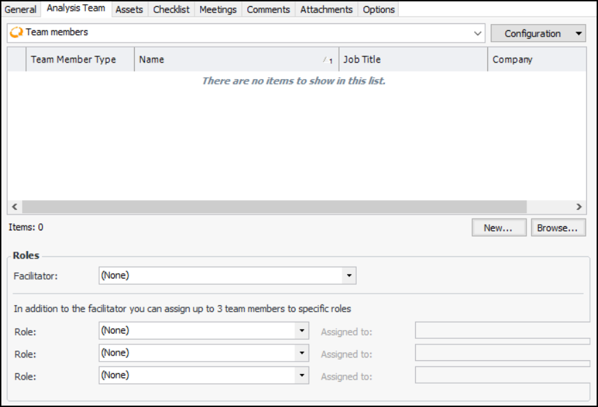 4. To create a team member record, click New. The Analysis Team Member dialog appears.