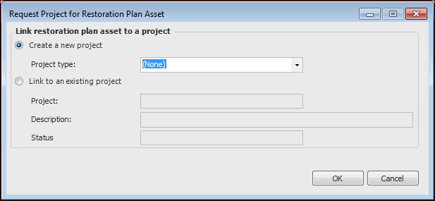 To view the projects linked to a plan’s assets, open the Asset Restoration Plan window for the asset and select the Projects tab. When viewing a Project window, you can see a list of the plan assets that are linked to it in the Properties view, Restoration Plans tab.This topic explains the basic steps for linking a plan asset to a project from an restoration plan. For detailed information about projects, see Projects.To Link a Plan Asset to a Project
