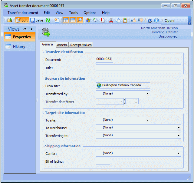 To Create a New Asset Transfer Document
