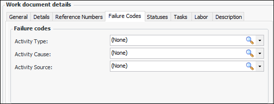 • Failure codes – You can define as many as five levels of failure codes and name them to match the codes used in the CMMS