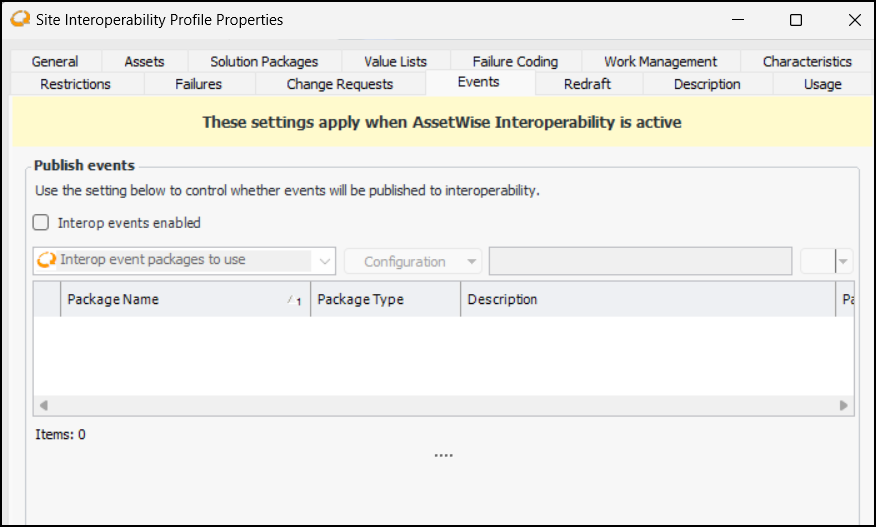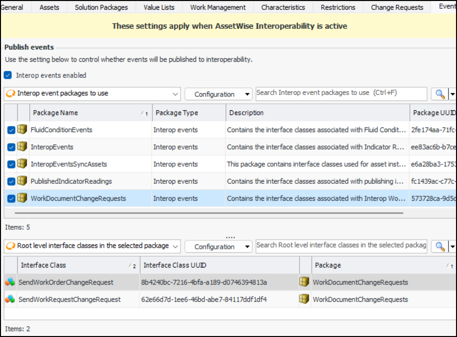 2. To implement outbound events, select Interop events enabled and select the interface package(s) to use. For example:To Set Redraft Options for Approvals