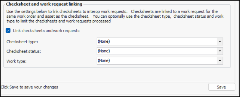 To manually run the process, on the Site window, click the Tools menu, Inspection Management, and then Link Checksheets to Work Requests.To have the process run on a regular basis, set up the Link Checksheets to Work Requests scheduled action. For more information, see Creating a Scheduled Action.To Adjust the Performance of the Process