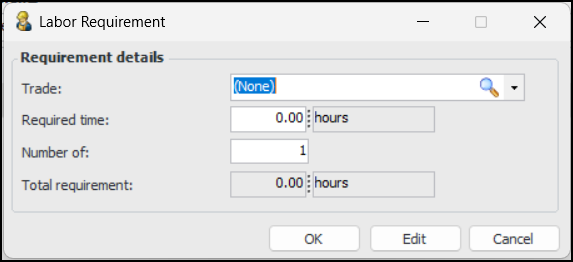15. Select the Labor tab. For each requirement that you wish to add, click New to open the Labor Requirement window: