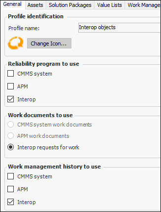 Work Management tab, where you can define value lists and settings for interop work documents.