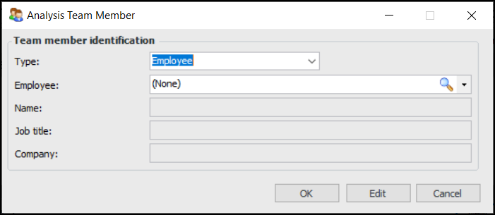 6. If the member has an APM employee record, select Employee from the Type list. Select the employee from the list or click the browse icon to select the employee or create a new record. The employee is added to the Employee box.
