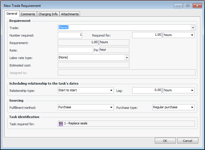 You may know in advance that the work order will require a job contractor resource. Or, you can plan the trade as an internal (employee) requirement, and later change it to a purchase (job contractor) requirement if necessary. To add a requirement for internal employees or for on-site contractors, see Adding Trades to a Work Order Task.Overriding GL Accounts