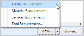 4. Tip: You can also select the Labor tab to view all labor requirements for the work order task, and then click New.Tip: To add several different requirements at once, click Browse. The Browse Catalog dialog appears. Each tab on this dialog lists different types of resources that you can choose. On the Resources tab, select the Resource type to switch between materials, tools, trades, and services. Select the check boxes for each resource that you want to add. You can select resources on more than one tab. When you are finished, click OK.