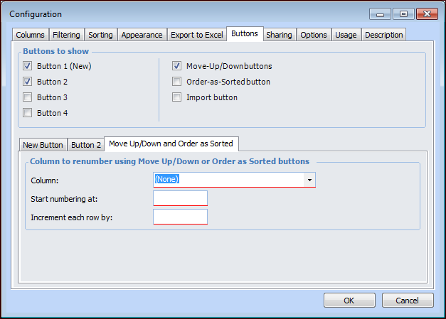 12. If you selected Move Up/Down buttons or Order as Sorted button, the Move Up/Down and Order as Sorted tab appears.