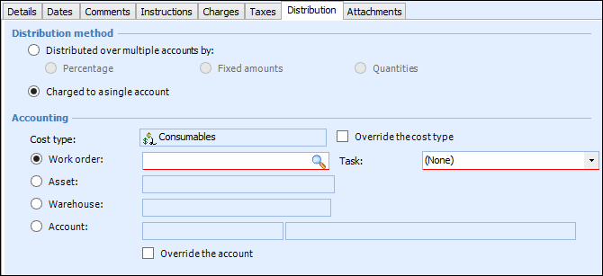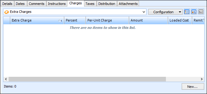 10. Select the Charges tab to enter extra charges.