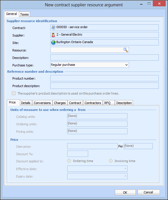 18. When you are finished entering information for the supplier resource, click OK. The resource is added to the contract.