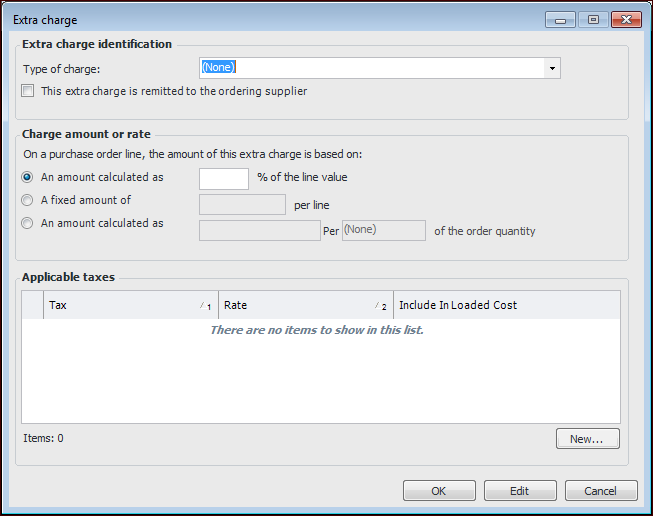 10. To add an extra charge, click New. The Extra Charge dialog appears.