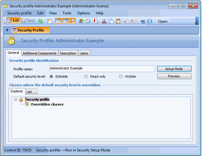 10. From the Security Profile view, click Exit Setup to exit security setup mode.