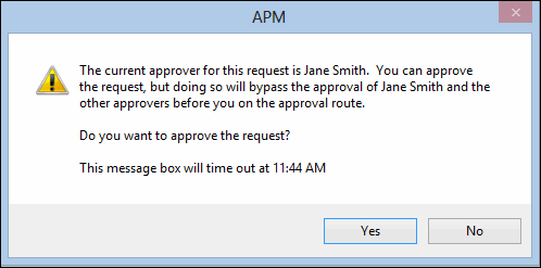 4. Click Yes. The Approve or Reject dialog appears.