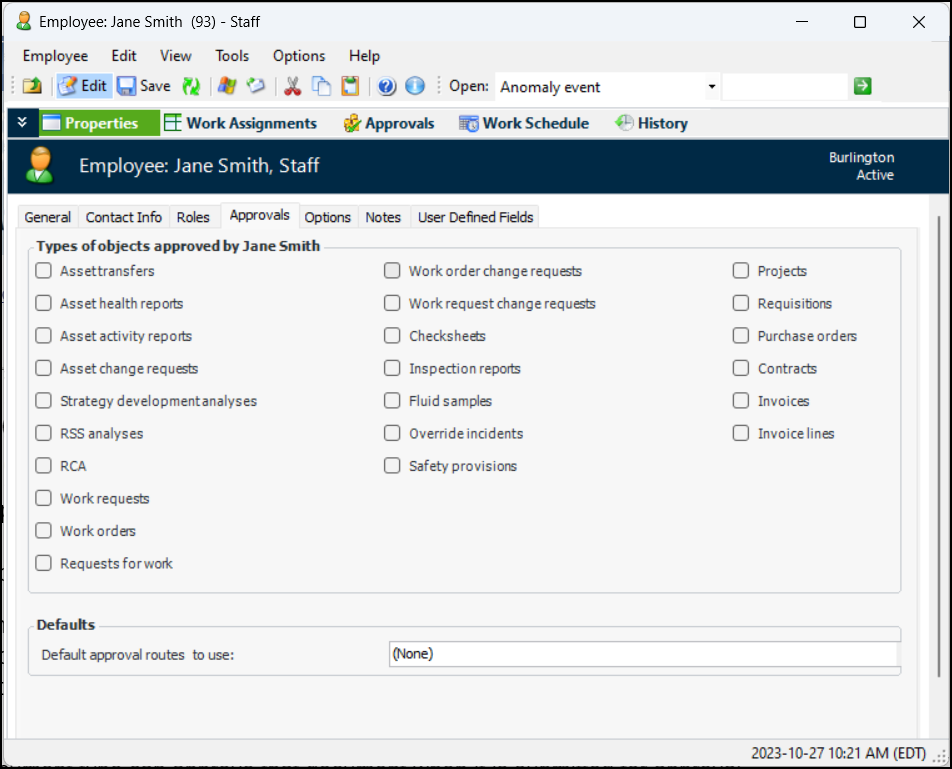 Approvers in APM have the authority to approve or reject documents that are sent to them for approval using an approval route. Approvers have maximum approval limits for each approval route they are on. You can specify that an approver must review all requests.When you set up an approval route, you will identify the approvers who will review the documents sent to the route. You can specify the maximum value these employees are authorized to approve.To Set up an Employee as an Approver