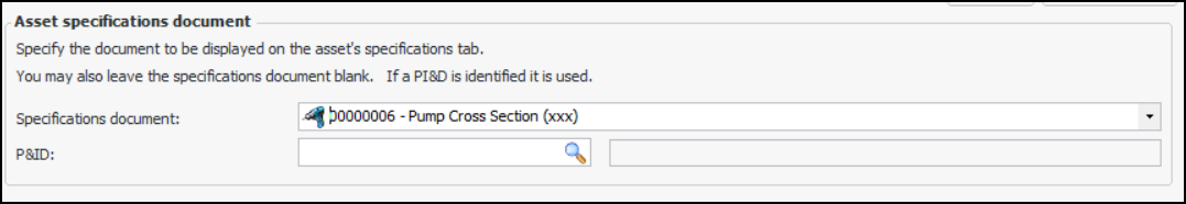 4. You can also select a piping and instrumentation diagram (P&ID) and leave Specifications document blank. The P&ID will be displayed on the asset’s Specifications tab.
