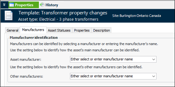 9. Select the Manufacturers tab to set options for identifying manufacturers for assets: