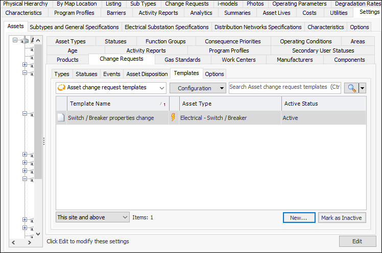 Setting up Asset Change Request Templates