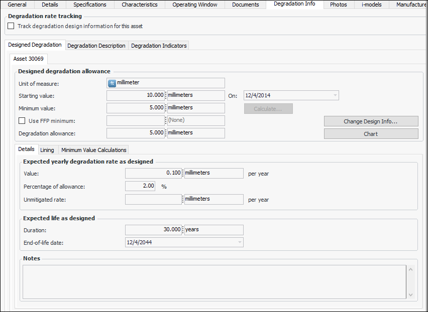 3. On the This Asset tab, provide information about the designed degradation allowance: