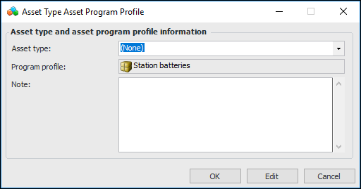 6. For each asset type that you wish to add, click New. The Asset Type Asset Program Profile dialog appears: