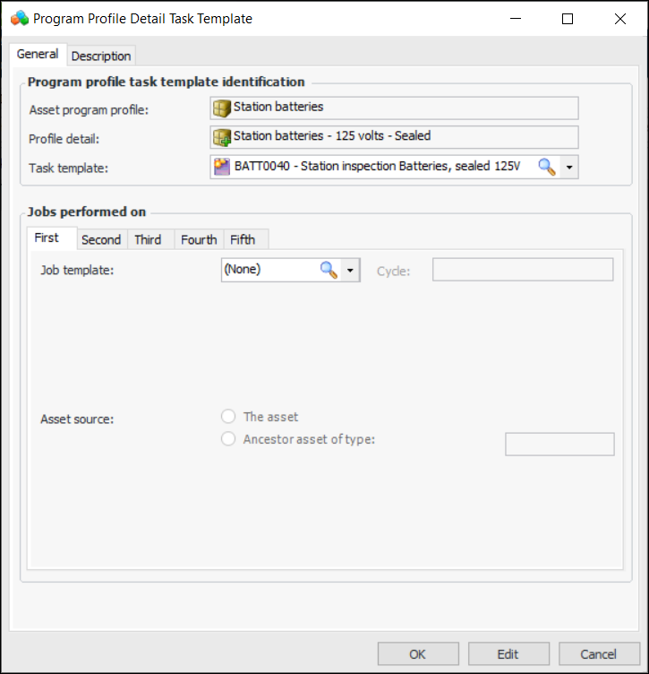 8. Select the Description tab to add more information.To Define Asset Program Profile Details