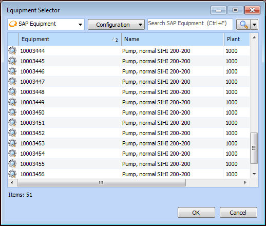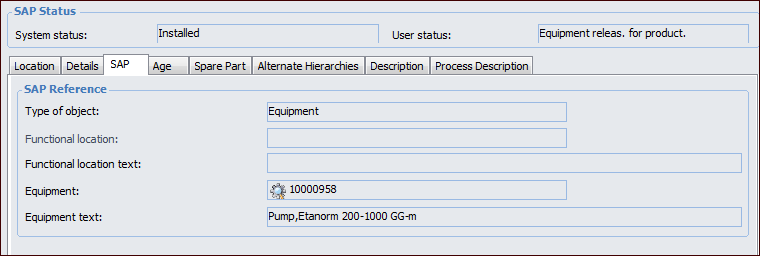 SAP Equipment tab, depending on the type of object referenced. These tabs contain lists of related SAP information, for example, notifications, maintenance orders, object list, operations, and summaries.