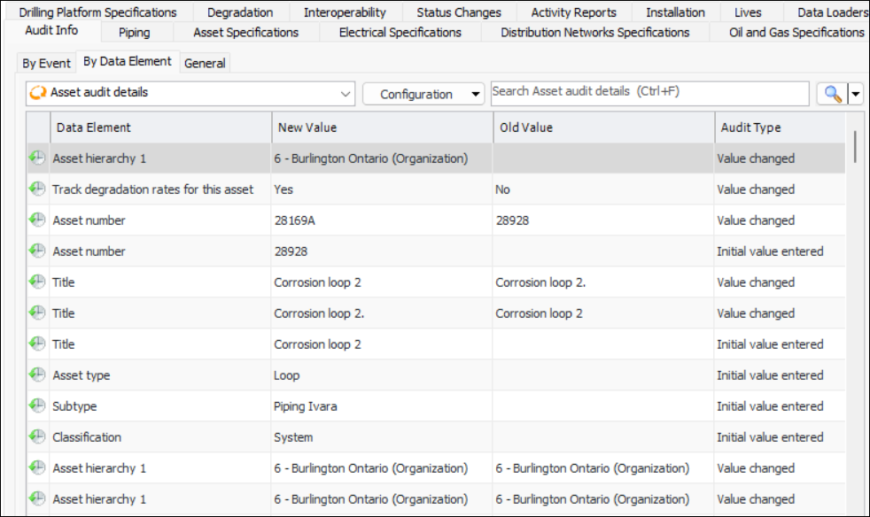 3. Select the By Data Element tab to view audit details for each data element. For example: