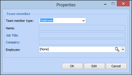 If the team member you are adding does not have an APM employee record, select Consultant and provide the member’s name, job title, and company or department.If the team member is also an employee, select Employee and browse or select the employee from the list.