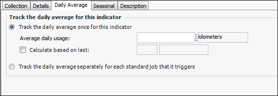 • To create separate daily averages for each standard job that refers to the indicator, select Track the daily average separately for each standard job that it triggers. If you select this option, the other options on the tab are not relevant and are disabled.