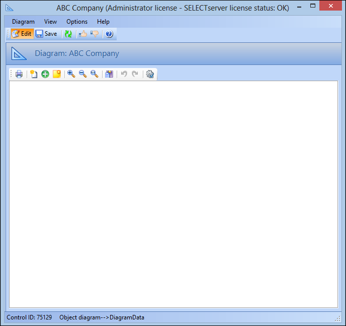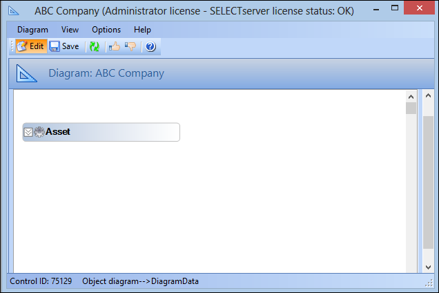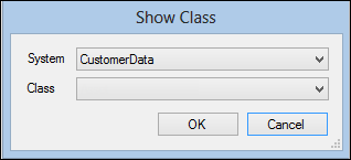 4. Enter a name for the diagram and then click OK. The Diagram window appears.Tip: You can also right-click a blank area of the diagram and select Show Class.Note: The CustomerData system includes all custom classes created in APM.