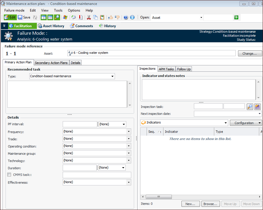 • To be determined means that an action plan type has not been decided on.Note: If APM is configured to interact with a SAP Plant Maintenance system, System condition and Work center are available in the Details area.