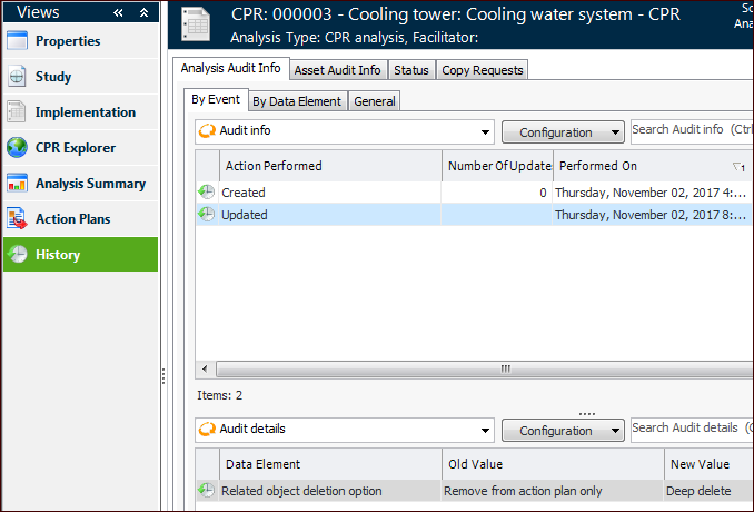 32. On the History view, Analysis Audit Info tab you can monitor the status of the review after it is created.