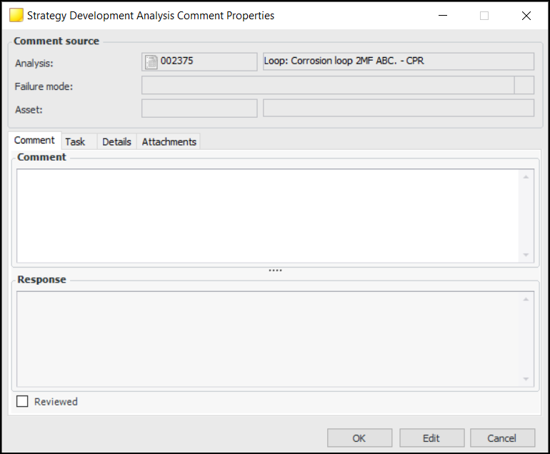 • Review – Open the Strategy Development Analysis window, select the Properties view, and then the Comments tab.