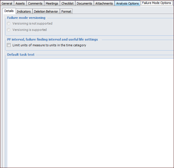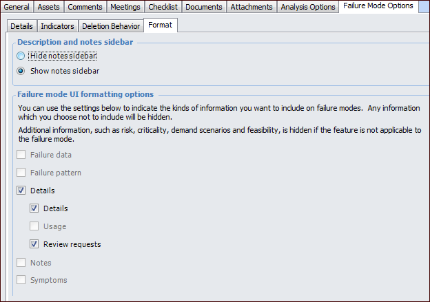 • Hide or show the Failure mode note sidebar in Maintenance Action Plan windowsTo Set Details