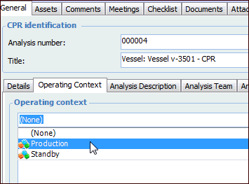 Note: Operating context values are defined at the site level, in the strategy development settings. For more information, see Setting up Operating Contexts.To Record the Assets’ Operating Context