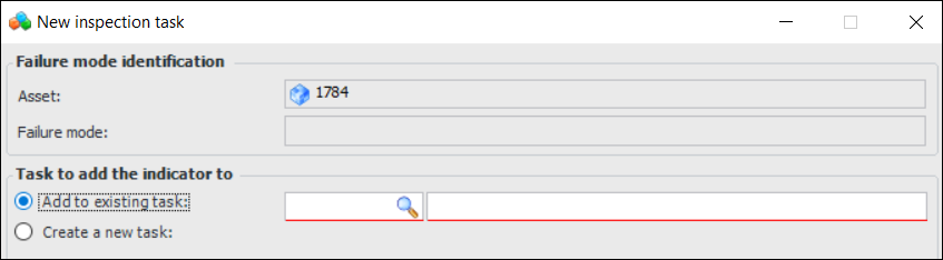 6. The options in the Indicator collection information area are enabled if the analysis’ failure mode options allow indicators to be automatically added to the inspection task. Select whether dynamic or static indicators are added to the task.