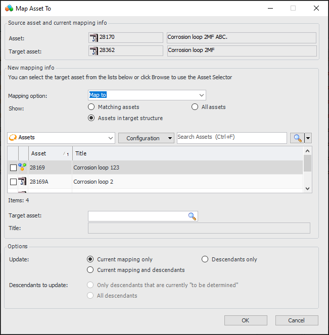 • Mapped to Primary Asset – the source asset is mapped to the target asset selected as the starting point for the structure