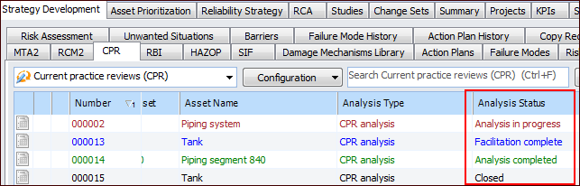 1. Tip: You can also view the list of reviews from an asset’s Strategy Development view and tab, Analyses tab.