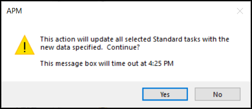 6. Click Apply to perform the mass update. A dialog prompts you for confirmation. For example: