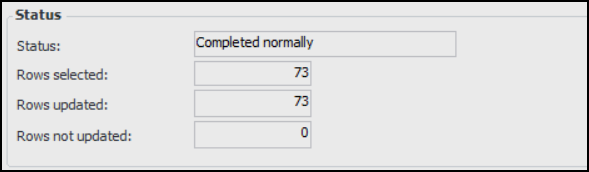 8. When the update is complete, the status of the updates is displayed in the Status section. For example: