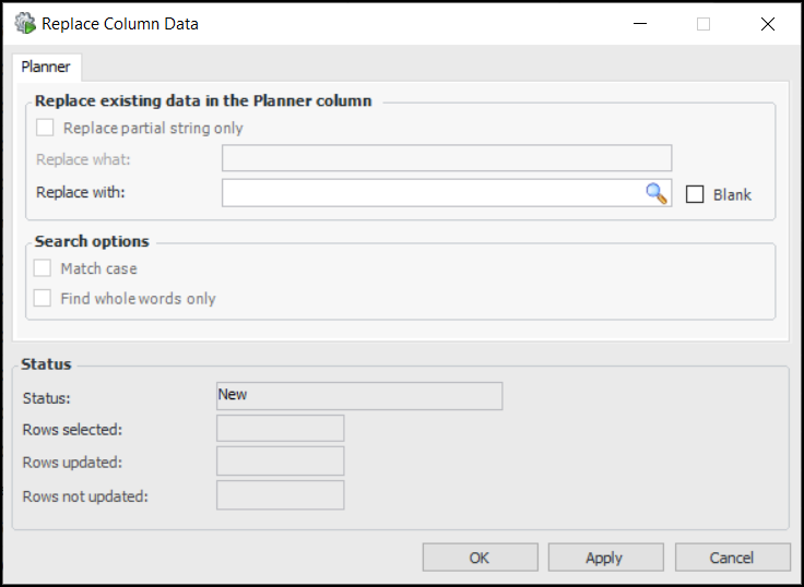 4. Right-click the Planner column heading and select Replace. The Replace Column Data dialog appears. For example: