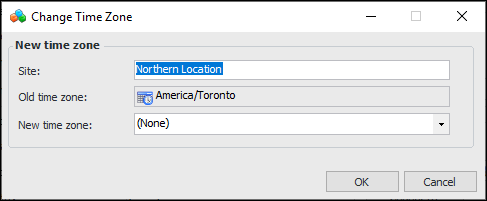 6. Click OK. When the dialog closes, the change is made for the site and becomes the default for child sites that have not been assigned time zones.