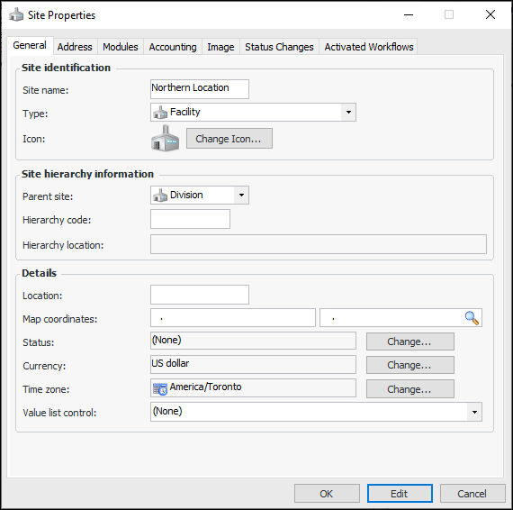 Note: To enable site time zones, open the Enterprise window, select the Features view and the Enabled Features tab. Click Browse, select feature 9 “Time Zones by Site,” and click OK. If APM is running as a smart or remote client, click Refresh Enabled Features on the server. Then restart the client to use the functionality in the product.To Change a Site’s Time Zone