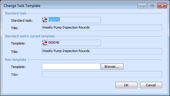 Note: Changing the task template link might result in some information being lost from the standard task.To Change the Link between a Task Template and a Standard Task