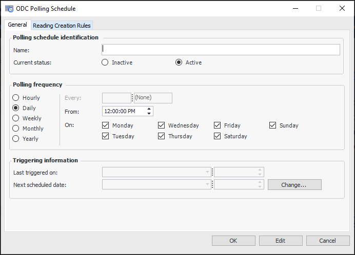 3. Click New. The ODC Polling Schedule dialog appears.