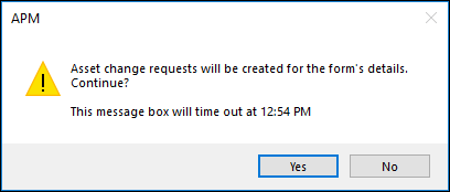 You can start the request manually by clicking the Tools menu and then Create Asset Change Requests. Alternatively, the change request can be initiated automatically when the construction form status changes. In this case, the status settings specify that a request is created as soon as the status is applied to the form. For example, in some implementations, when the status changes to “Create Request”, APM automatically creates the change request.Once the construction form has been reviewed (if required) and the request has been sent to interop, the form cannot be modified. However, if asset properties need to be updated, you can initiate an asset properties type of change request from the Construction Form window, Details view and tab. The Properties Change Request button is enabled only for processed construction form details. For more information, see Creating Asset Properties Change Requests.Equipment removal requests are created manually for the asset, which must have a corresponding asset in the CMMS. The asset type must specify that “Assets of this type support remove equipment requests” in its asset policies. See Creating Equipment Removal Requests.To Create Change Requests for a Construction Form