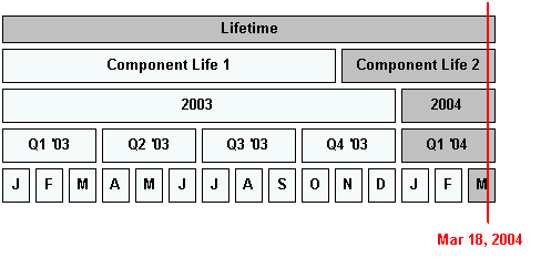 In APM, an asset can have any number of lives. Each life is tracked with a number, a start date, and an end date. APM tracks costs and cumulative indicator information for each asset life, similar to the tracking for financial periods. In a multi-site environment, asset costs are tracked separately for each site where the asset is installed so that differences between site currencies are accurately reflected.Starting a New Asset Life